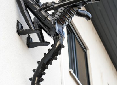 Hier ist der erste Drache den ich gebaut habe. Dieser schmückt unsere Fassade. Noch sehr einfach gehalten, ohne größere Details.